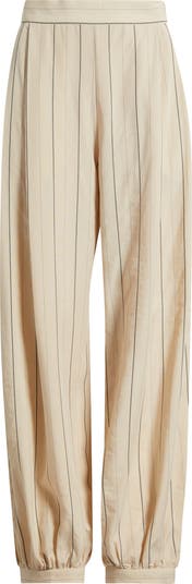 Built for movement, these striped pants lean into generous volume with balloon legs that puff, dip and bounce with every step. It’s the kind of easy shape that makes a simple weekend look feel styled.