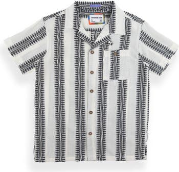 Dressed him up without slowing him down. This short sleve textured button-up is designed comfort and style in mind. A classic button-up shirt finished with a textured stripe fabric.