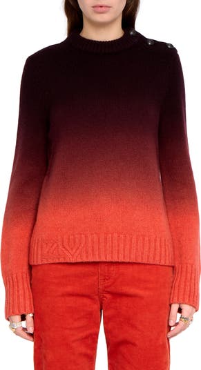 A conflagrant dip dye brings on the heat in this luxe cashmere sweater finished with crest buttons at one shoulder.