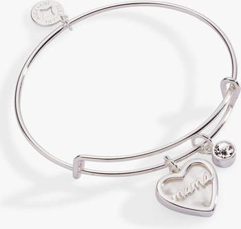A fan favorite for moms, now in Spanish with Mamá. This expandable wire bracelet features a radiant Mother of Pearl heart with raised lettering and a sparkling crystal charm. A symbol of nurturing love and lifelong guidance, it’s a meaningful way to honor the woman who’s always by your side. Fits wrists 6"–8".