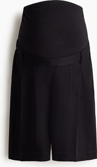 Knee-length, loose-fit shorts in a viscose-blend weave with covered elastication at the sides and a wide jersey panel at the waist for best fit over the tummy. Fake fly, diagonal side pockets and fake welt pockets at the back. Pleats at the front and creases down the front and back.
