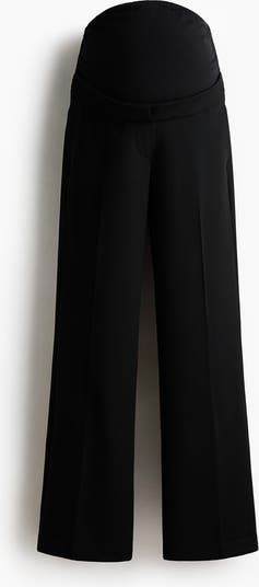 Trousers in twill featuring a high waist with concealed elastication, a fake fly and a wide jersey panel at the waist for best fit over the tummy. Diagonal side pockets, jetted back pockets and bootcut legs with creases down the front and back.