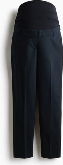 Ankle-length cigarette trousers in a stretch weave with a fake fly, diagonal side pockets, fake welt pockets at the back and concealed elastication at the back of the waist. Slim legs with creases down the front and back. Wide waist panel for best fit over the tummy.