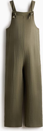 Dungarees in an airy weave made from a viscose blend. Square neckline, double-layered shoulder straps with an adjustable knot-fastening at the front, and straight legs.