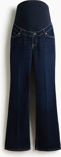 5-pocket jeans in denim with a slight stretch for good comfort. Slim fit with flared legs, a fake fly with a button and a wide jersey panel at the waist for best fit over the tummy.