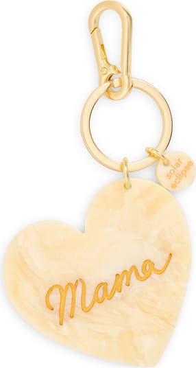 Bring a personalized touch to belongings with this hand-painted bag charm in the shape of a heart and centered with script that makes it a perfect gift for the new mom in your life.