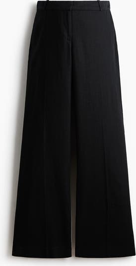 Tailored trousers in woven fabric made from a lyocell and linen blend. Low waist with concealed, adjustable elastication. Diagonal side pockets and fake welt pockets at the back. Straight legs with creases down the front and back.