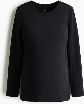 Fitted, long-sleeved sports top in interlock jersey featuring a round neckline, forward-facing side seams and a straight-cut hem.