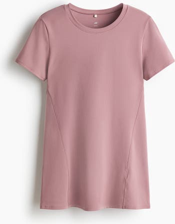 Fitted, short-sleeved sports top in interlock jersey with a round neckline, forward-facing side seams and a straight-cut hem.
