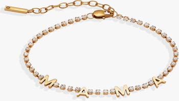 Four little letters tell an entire love story. This “Mama” Tennis Bracelet features letter charms that spell out “MAMA,” set inline in an adjustable-length crystal tennis bracelet. Wear it to keep your family close, or gift it to someone you love. Because it’s gold-tone stainless steel, it’s durable and scratch-resistant so you can wear it on repeat.