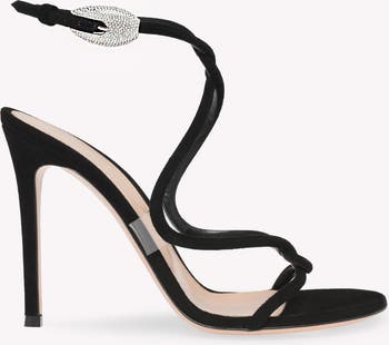 Crafted from suede, Mamba Crystal is a round toe sandal with a 105mm stiletto heel. The design presents a sinuous snake's coil inspired upper motif. The criss-cross ankle strap is completed with a crystal-embellished snake head inspired metallic buckle. Handmade in Italy.