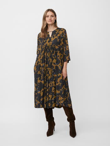 Whatever the occasion, this elegant dress offers the perfect solution. Crafted from soft viscose with a floral print, it features feminine details like a neck slit, front pleats, and a flattering A-shape cut.