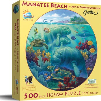 - Manatee Beach 500 pc Round Jigsaw Puzzle