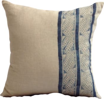 Inspired by African art and textiles, this collection of pillows are modern yet timeless. Hand printed on Natural Linen. 20 x 20 Indigo Decorative Pillow Cover. Hidden zipper. Insert not included.