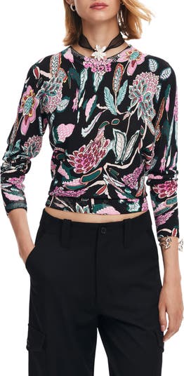 This soft and lightweight crewneck sweater is kissed with linen and printed with swoopy blooms and leaves to liven up your day.