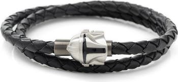 The Force is strong with this braided leather bracelet designed to wrap the wrist twice.
