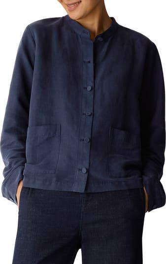 Mandarin Collar Organic Linen & Silk Twill Jacket