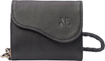 A compact premium leather wallet with a zipper coin pocket, 5 card slots, and a cash compartment — includes a wristlet strap for hands-free carrying.