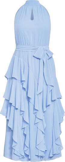 Abundant ruffles cascade down the skirt of a dreamy sleeveless dress that's ready to stand out from the crowd.