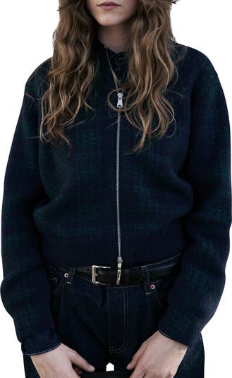 A trad plaid lends classic style points to a zipped cardi that will polish lots of looks.