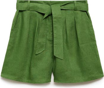 Ease into sunny days in lightweight linen shorts designed in a relaxed fit with pleats at the front and a tie belt cinching the waist.