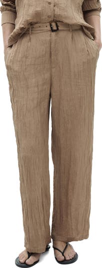 Flowy, textured fabric and a breezy wide-leg silhouette lend easy movement to these pleated pants topped with a matching belt.