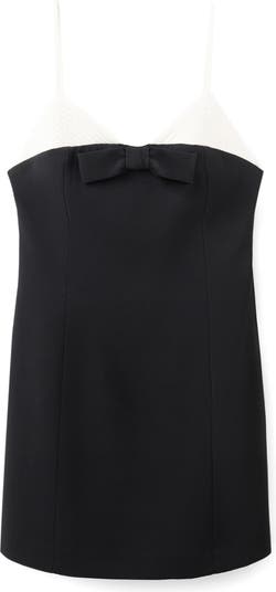 Build out your black-and-white collection with a night-out dress hung from slim straps and cut to a leg-baring length.