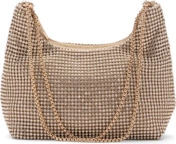 Crystal mesh brings glamorous sparkle to this event-worthy bag slung from a slinky box chain strap.