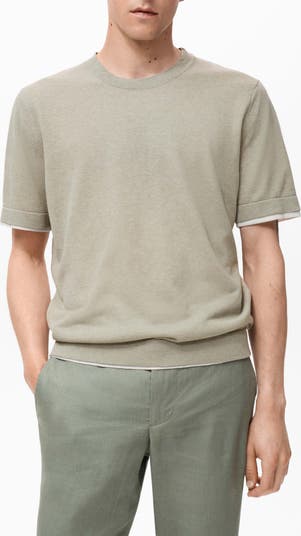 Contrast trim adds a subtle yet eye-catching detail to the sleeves and hem of this cotton-blend T-shirt.