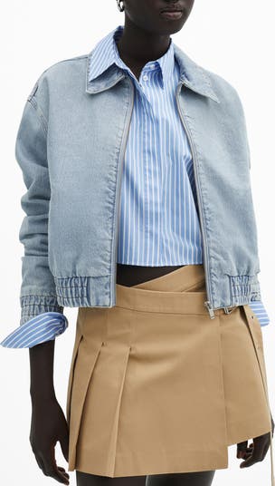 This pared-down, elastic-trimmed bomber jacket is made from nonstretch denim in a minimalist silhouette that layers sleekly over casual outfits.
