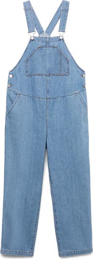 Stay comfy through the trimesters in these classic denim overalls made with a medium wash, straight legs and a mix of handy pockets.