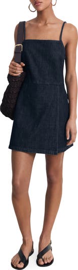 Keep it cute and modern in this chic skort romper that's ready for some fun in the sun in dark-wash nonstretch denim.