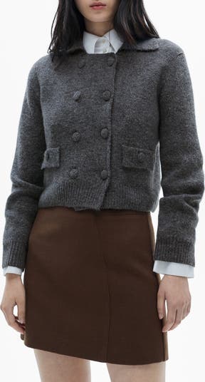 Cozy-chic and perfectly polished, this cropped jacket features covered buttons and sweater-like yarns with a hint of wool for extra warmth.