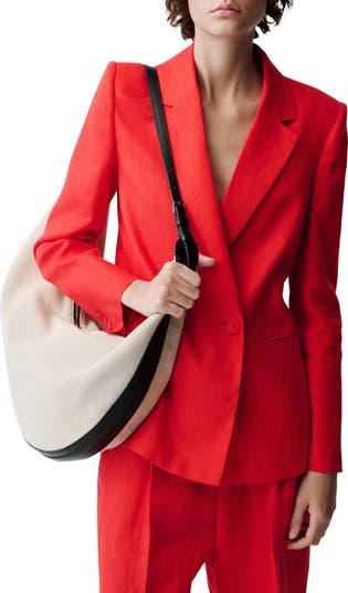 Stand out as you stay cool in this menswear-inspired, double-breasted blazer made of a lightweight linen weave.
