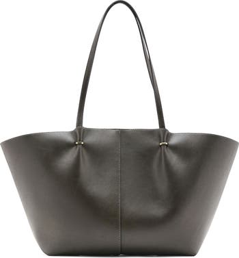 Subtle hardware and smooth faux leather distinguish a spacious shopper bag suspended from a pair of slender shoulder straps and perfect for storing the essentials.