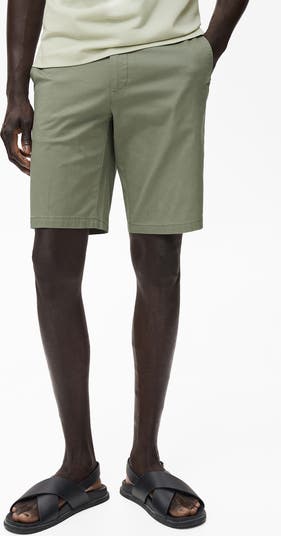A staple of any warm-weather wardrobe, these chino shorts tailored from stretch-enhanced cotton twill sit right at the hips and hit above the knees in a classic Bermuda length. Flat-front styling keeps them timeless and versatile, making them an ideal choice for sunny-day occasions and casual, laid-back evenings.