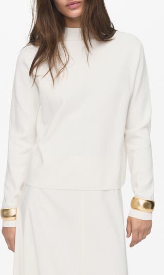 A relaxed silhouette enhances the everyday appeal of this lightweight sweater topped with a streamlined funnel neck.