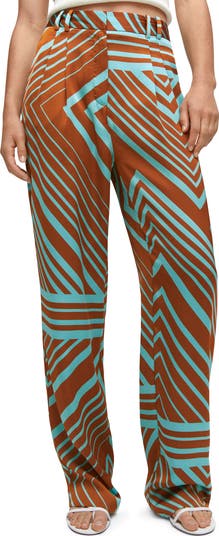 An eye-catching geo print enhances the flowy comfort of these high-waist pants crafted from soft satin with relaxed straight legs.