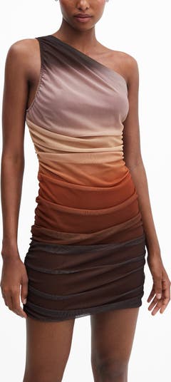 Ruched sides lend texture to this gradient dress topped by a single shoulder.