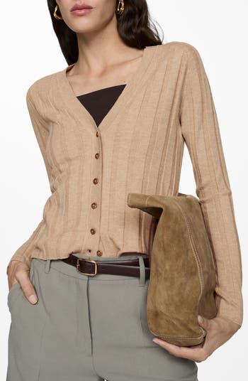 Make sweater-weather even better in this svelte cardigan that's articulated by wide-set ribbing for a stylish look.