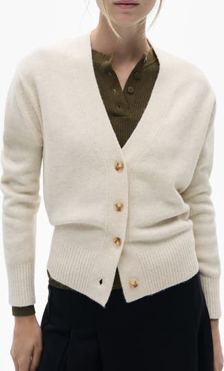 A timeless V-neckline makes this ribbed trim, wool-kissed cardigan a modern look for layering or wearing on its own.