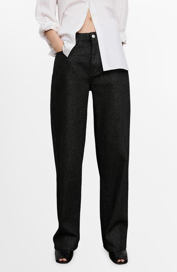 Bring the shimmer to your evening look in these striking straight-leg jeans highlighted by allover metallic fibers that catch the light with every move you make.
