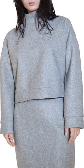 Roomy dropped shoulders and a posh mock neck frame this cozy sweatshirt that's cast in versatile grey for endless styling possibilities.