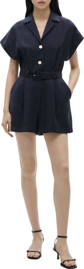 A sharp notched collar and pleats at the shorts add to the polished style of this belted romper that's a must for your warm-weather wardrobe.