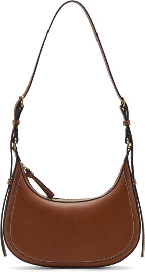 Brushed antique hardware enriches a faux-leather shoulder bag designed in a geometric profile and fitted with a convertible strap for convenient on-the-go styling.