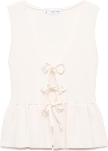 A trio of ties closes a ribbed-to-fit sweater knit in a summery, sleeveless silhouette.