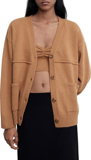 A classic light layer for any wardrobe, this V-neck cardigan features patch pockets and a raised stitch detail for relaxed, casual style.