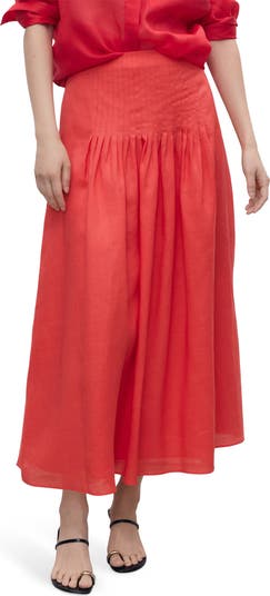 Crisp pleats create the classic A-line silhouette of this versatile midi skirt from lightweight and breathable ramie.
