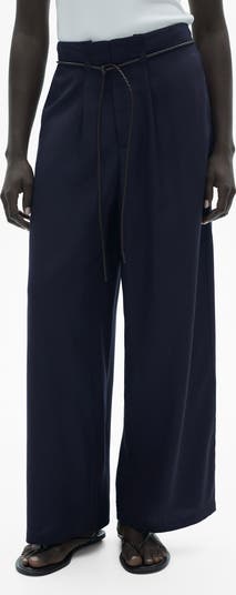 Stride through the office in these pleated wide-leg pants cut from soft, lightweight fabric and fashioned with a slender corded tie.