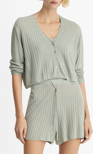 Airy pointelle stitching and sweetly scalloped edges bring a vintage vibe to this lightweight pajama cardigan meant for tossing over your bedtime looks.